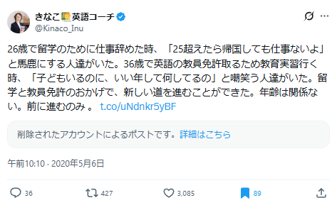 そんなある日、 ある人気英語発信者のポストに心を動かされて、 自分の人生と重ねた引用ポストを書いた。